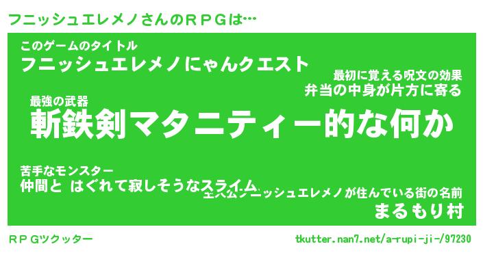 | 胡散臭い通販商品みたいなあだ名 | 『必ず成功する霊験あらたかなお札…その名も「フニッシュエレメノ」』 |