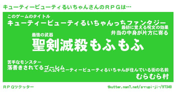 | 胡散臭い通販商品みたいなあだ名 | 『必ず成功する霊験あらたかなお札…その名も「キューティービューティるいちゃん」』 |
