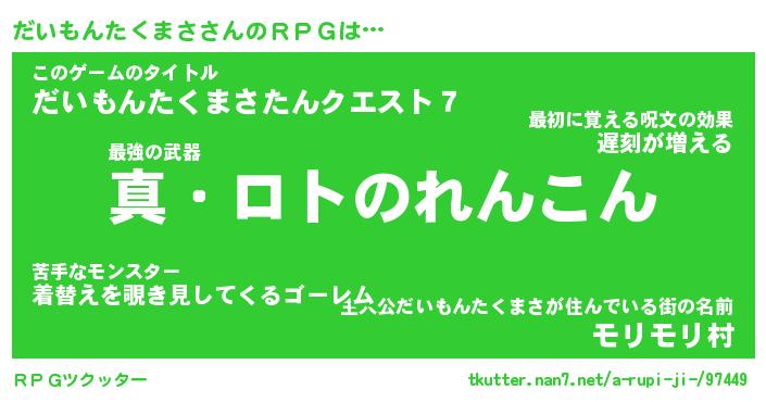 | 伝説のあだ名 | 『封印されし竜騎士だいもんたくまさ』 |