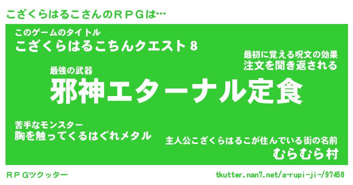 | 伝説のあだ名 | 『封印されし傭兵こざくらはるこ』 |
