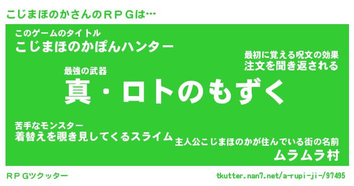 | 男性向けラノベタイトル風あだ名 | 『コジマホノカアートオンライン』 |