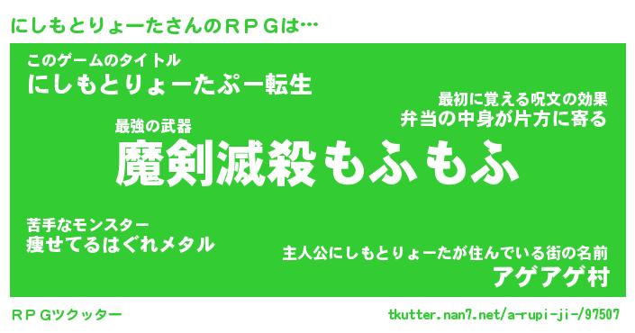 | 男性向けラノベタイトル風あだ名 | 『にしもとりょーたの憂鬱』 |