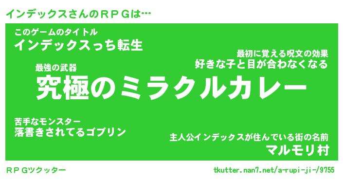 | 男性向けラノベタイトル風あだ名 | 『インデックスの憂鬱』 |