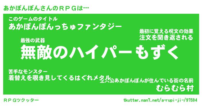 | 伝説のあだ名 | 『封印されし竜騎士あかぽんぽん』 |