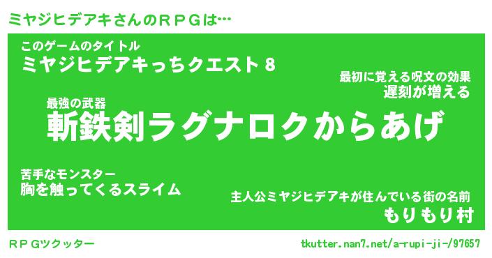 | 伝説のあだ名 | 『伝説の竜騎士ミヤジヒデアキ』 |