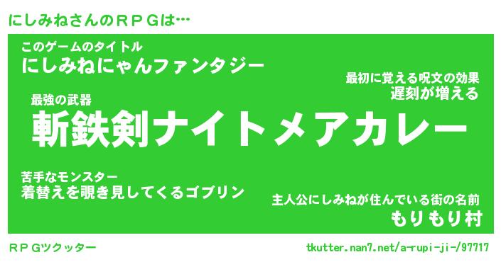| 胡散臭い通販商品みたいなあだ名 | 『必ず成功する霊験あらたかなお札…その名も「にしみね」』 |