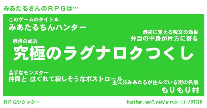 | 男性向けラノベタイトル風あだ名 | 『みあたるの憂鬱』 |