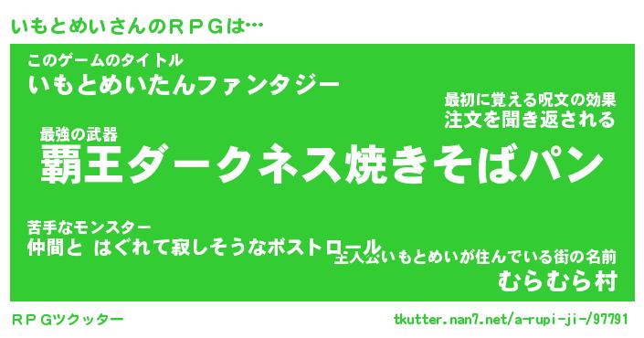 | 胡散臭い通販商品みたいなあだ名 | 『億万長者になれる水晶球…その名も「いもとめい」』 |