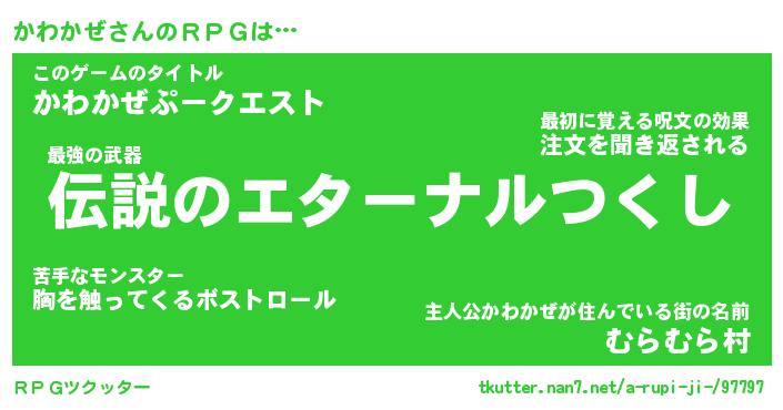 | 胡散臭い通販商品みたいなあだ名 | 『モテモテ間違いなし水晶球…その名も「かわかぜ」』 |