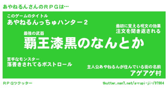 | 男性向けラノベタイトル風あだ名 | 『アヤネルンアートオンライン』 |