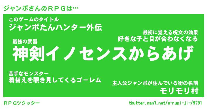 | 胡散臭い通販商品みたいなあだ名 | 『モテモテ間違いなし霊験あらたかなお札…その名も「ジャンボ」』 |