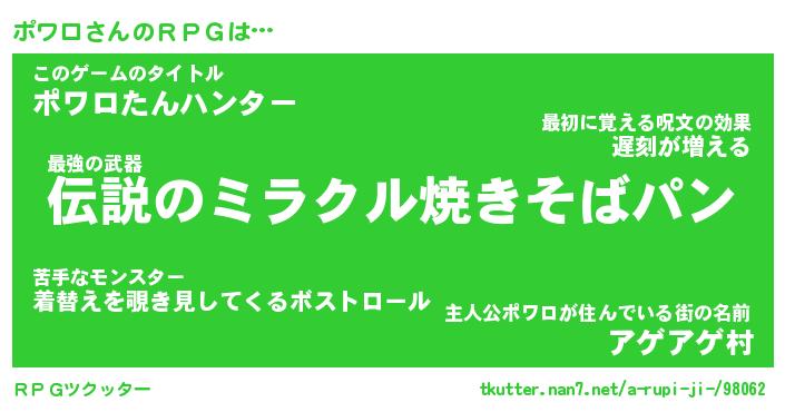 | 料理風あだ名 | 『節約★ポワロと油揚げの玉子丼』 |