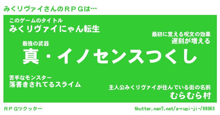 | 伝説のあだ名 | 『封印されしスナイパーみくリヴァイ』 |