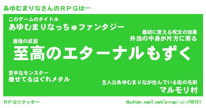| ツイッター | あゆむまりなさんのツイッターID『dendenmushi_idle』 |