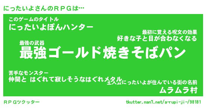 | ヒーロー風カッコイイあだ名 | 『スーパーニッタイヨ』『幻影騎士ニッ』 |