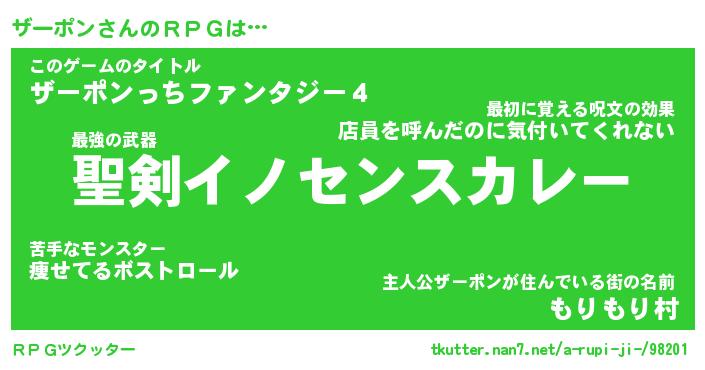 | 男性向けラノベタイトル風あだ名 | 『ザーポンの憂鬱』 |