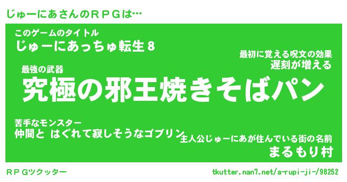 | ヘコむあだ名 | 『じゅにゅー』『なまこ酢』『じゅお』 |