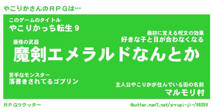 | 伝説のあだ名 | 『伝説のスナイパーやこりか』 |