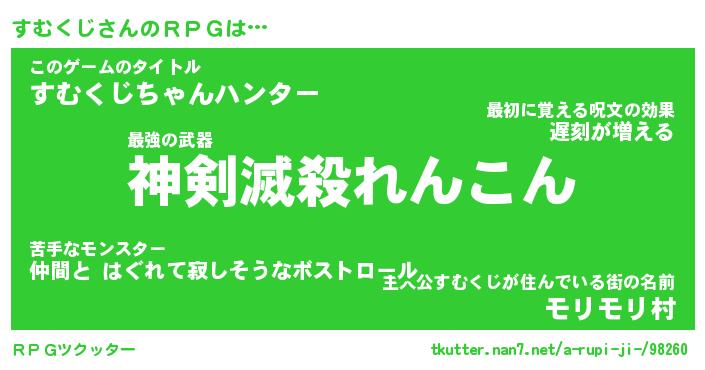 | 男性向けラノベタイトル風あだ名 | 『すむくじの憂鬱』 |