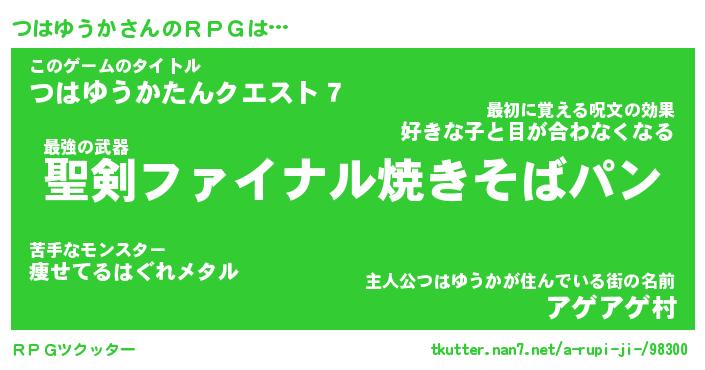 | ヒーロー風カッコイイあだ名 | 『スーパーツハユウカ』『魔戒騎士ツハ』 |