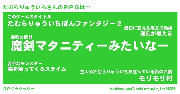 | 肩書あだ名 | 『たむらりゅういち御曹司』 |