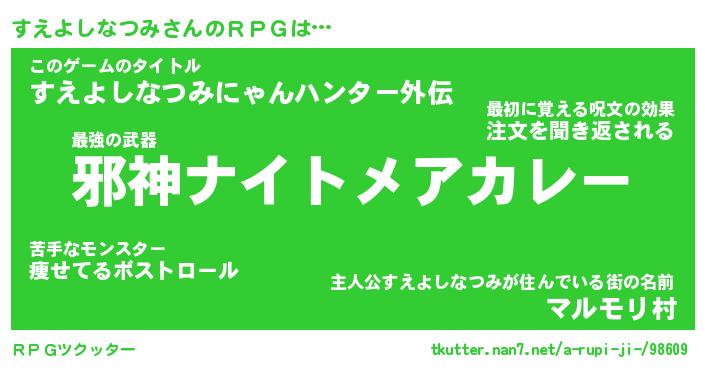 | 胡散臭い通販商品みたいなあだ名 | 『億万長者になれる霊験あらたかなお札…その名も「すえよしなつみ」』 |