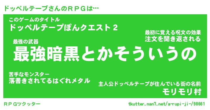 | 料理風あだ名 | 『節約★ドッペルテープと油揚げの玉子丼』 |