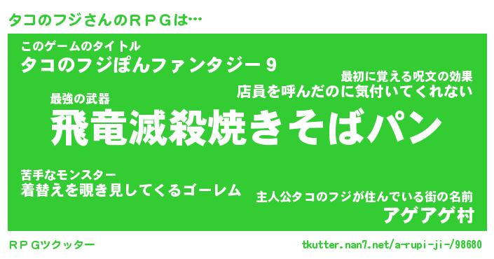 | 男性向けラノベタイトル風あだ名 | 『タコノフジアートオンライン』 |