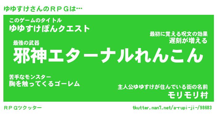| ファンタジー風あだ名 | 『ユユフェル』『エターナルユユスケー』 |