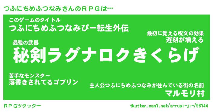 | 男性向けラノベタイトル風あだ名 | 『つふにちめふつなみの憂鬱』 |