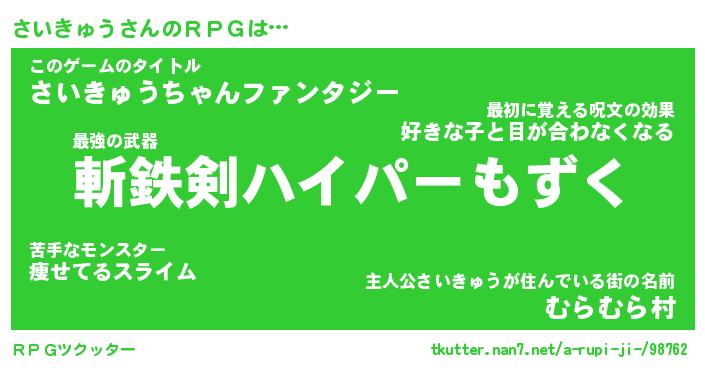 | 伝説のあだ名 | 『伝説の竜騎士さいきゅう』 |