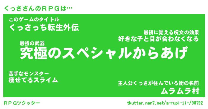| ファンタジー風あだ名 | 『クッフェル』『エターナルクッサー』 |
