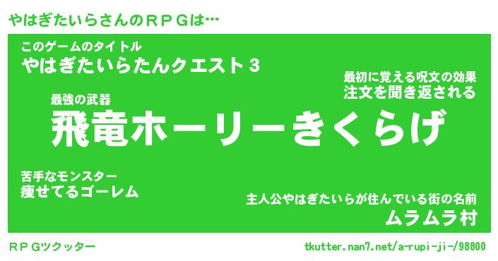 | 伝説のあだ名 | 『封印されし傭兵やはぎたいら』 |