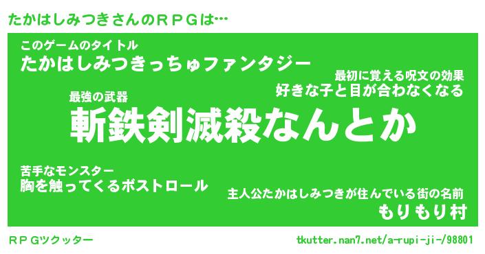| 胡散臭い通販商品みたいなあだ名 | 『必ず成功する霊験あらたかなお札…その名も「たかはしみつき」』 |