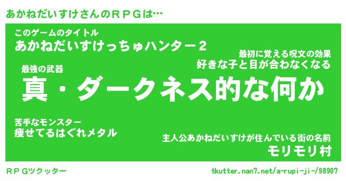| 伝説のあだ名 | 『封印されし傭兵あかねだいすけ』 |