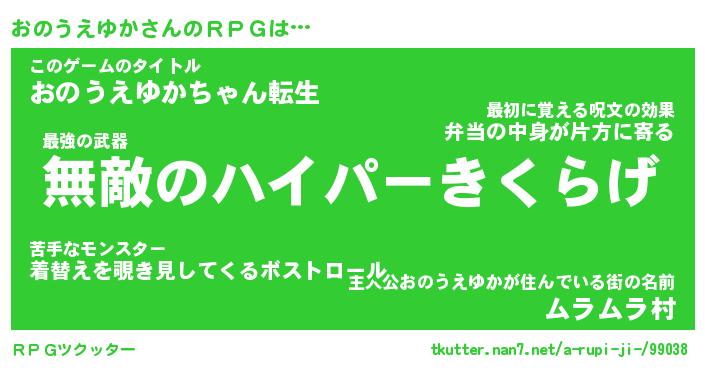 | 胡散臭い通販商品みたいなあだ名 | 『億万長者になれるブレスレット…その名も「おのうえゆか」』 |
