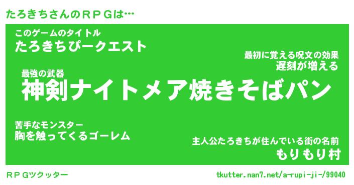 | 男性向けラノベタイトル風あだ名 | 『たろきちの憂鬱』 |