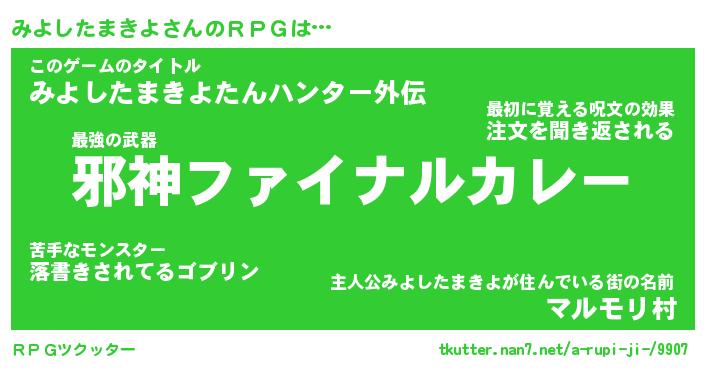 | 男性向けラノベタイトル風あだ名 | 『ミヨシタマキヨアートオンライン』 |