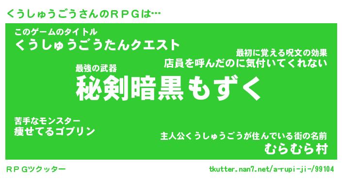 | 男性向けラノベタイトル風あだ名 | 『くうしゅうごうの憂鬱』 |