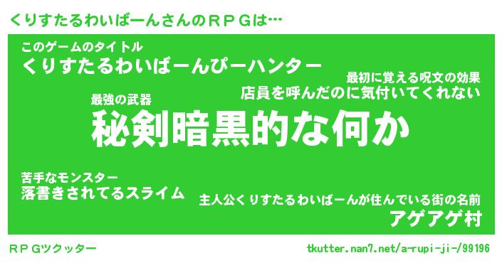 | 伝説のあだ名 | 『伝説の傭兵くりすたるわいばーん』 |