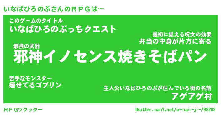 | 男性向けラノベタイトル風あだ名 | 『イナバヒロノブアートオンライン』 |