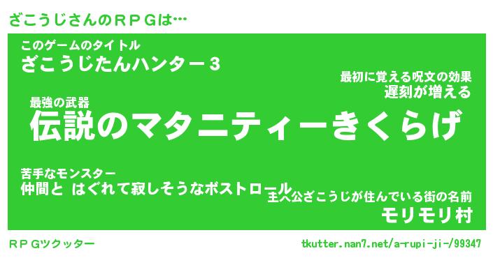 | ファンタジー風あだ名 | 『ザコフェル』『エターナルザコウジー』 |