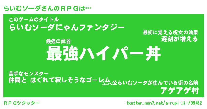 | 男性向けラノベタイトル風あだ名 | 『ライムソーダアートオンライン』 |