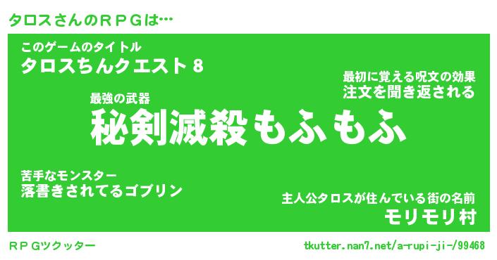 | 男性向けラノベタイトル風あだ名 | 『タロスの憂鬱』 |