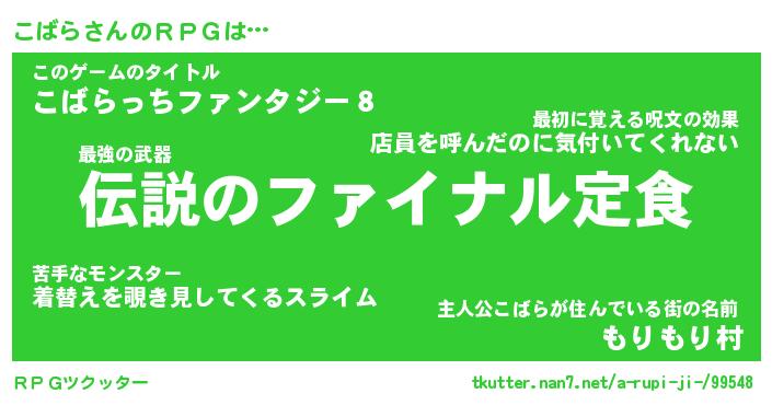 | 男性向けラノベタイトル風あだ名 | 『こばらの憂鬱』 |