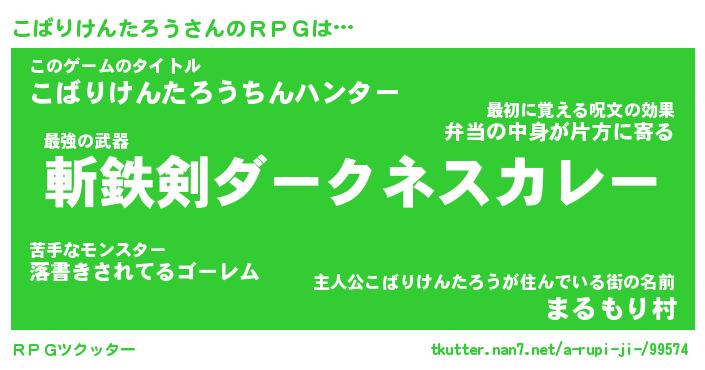 | 伝説のあだ名 | 『伝説の傭兵こばりけんたろう』 |