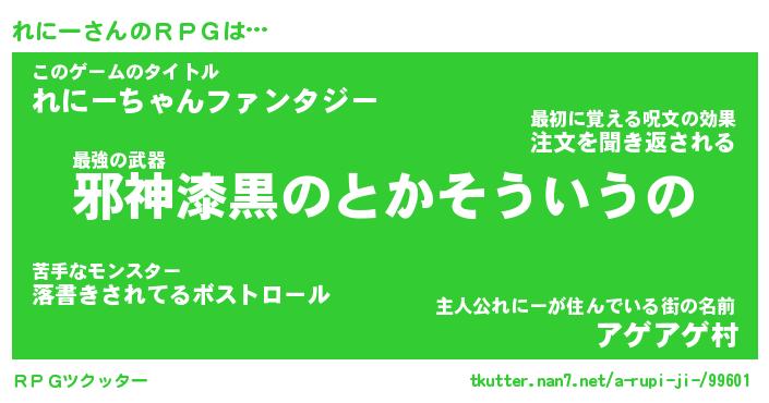 | 男性向けラノベタイトル風あだ名 | 『レニーアートオンライン』 |