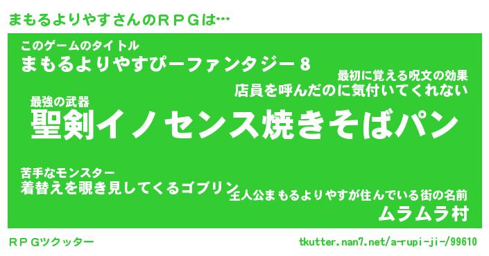 | 胡散臭い通販商品みたいなあだ名 | 『必ず成功する霊験あらたかなお札…その名も「まもるよりやす」』 |