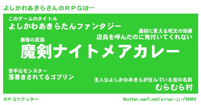| 胡散臭い通販商品みたいなあだ名 | 『必ず成功する霊験あらたかなお札…その名も「よしかわあきら」』 |