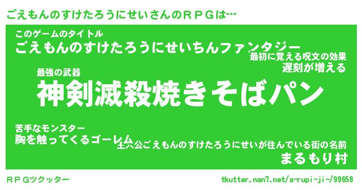 | 胡散臭い通販商品みたいなあだ名 | 『モテモテ間違いなし霊験あらたかなお札…その名も「ごえもんのすけたろうにせい」』 |
